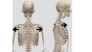 巻き肩とは肩関節が前方に入り込むように位置し、肩甲骨が外側に広がってしまっている状態を指します。見た目としては両肩が内側に丸まり背中が丸く、胸が縮こまったように見えるのが特徴です。